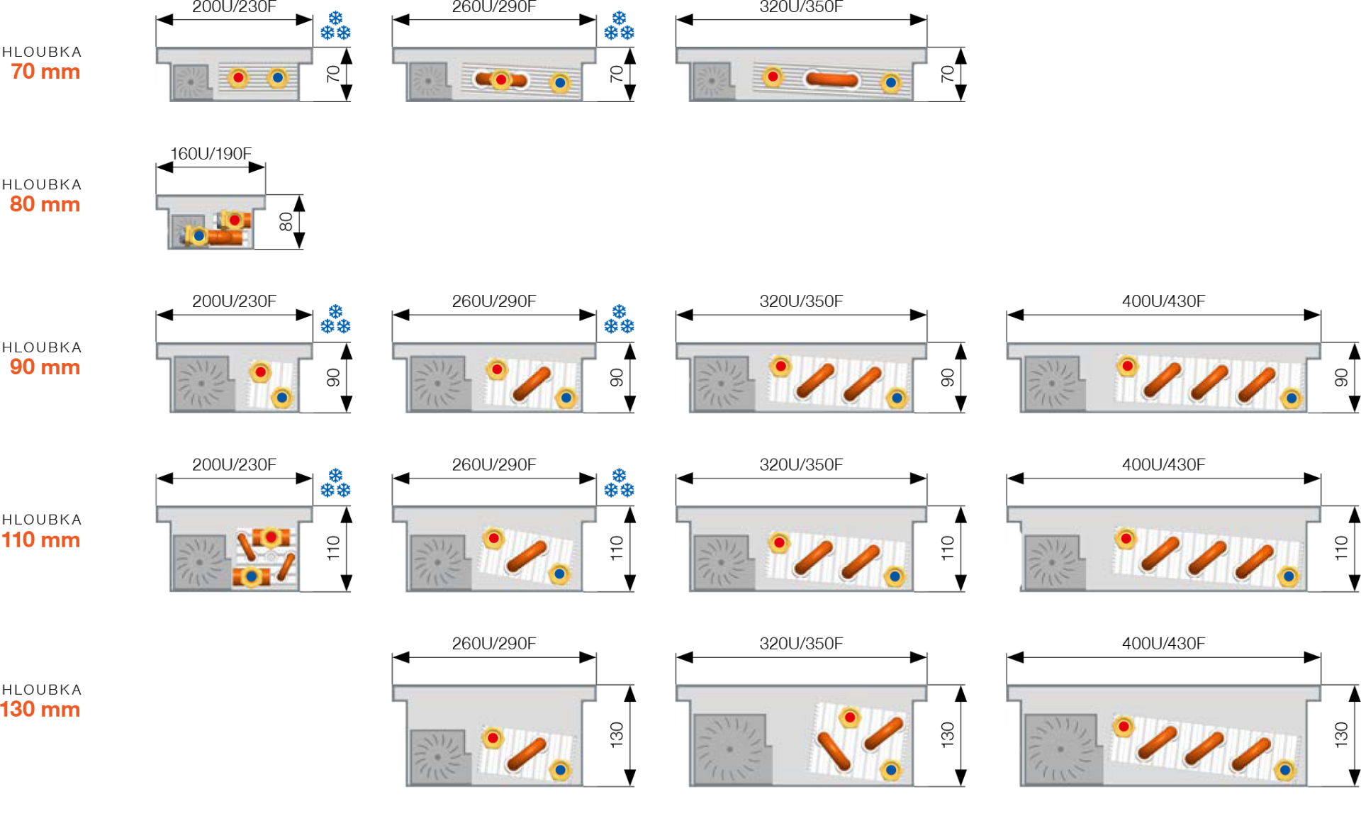 hloubka 70 mm/šířka 200 mm